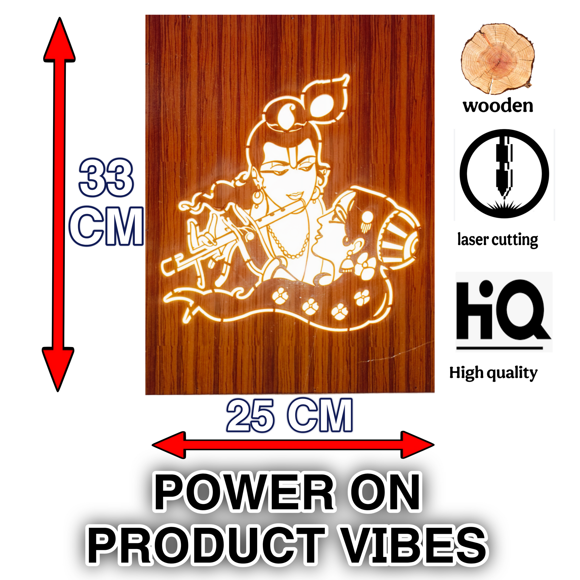 Ideal for gifting or enhancing your own decor, this Radha Krishna wooden laser cutting photo is a timeless treasure. Light up your surroundings and let the divine presence of Radha and Krishna bless your space!